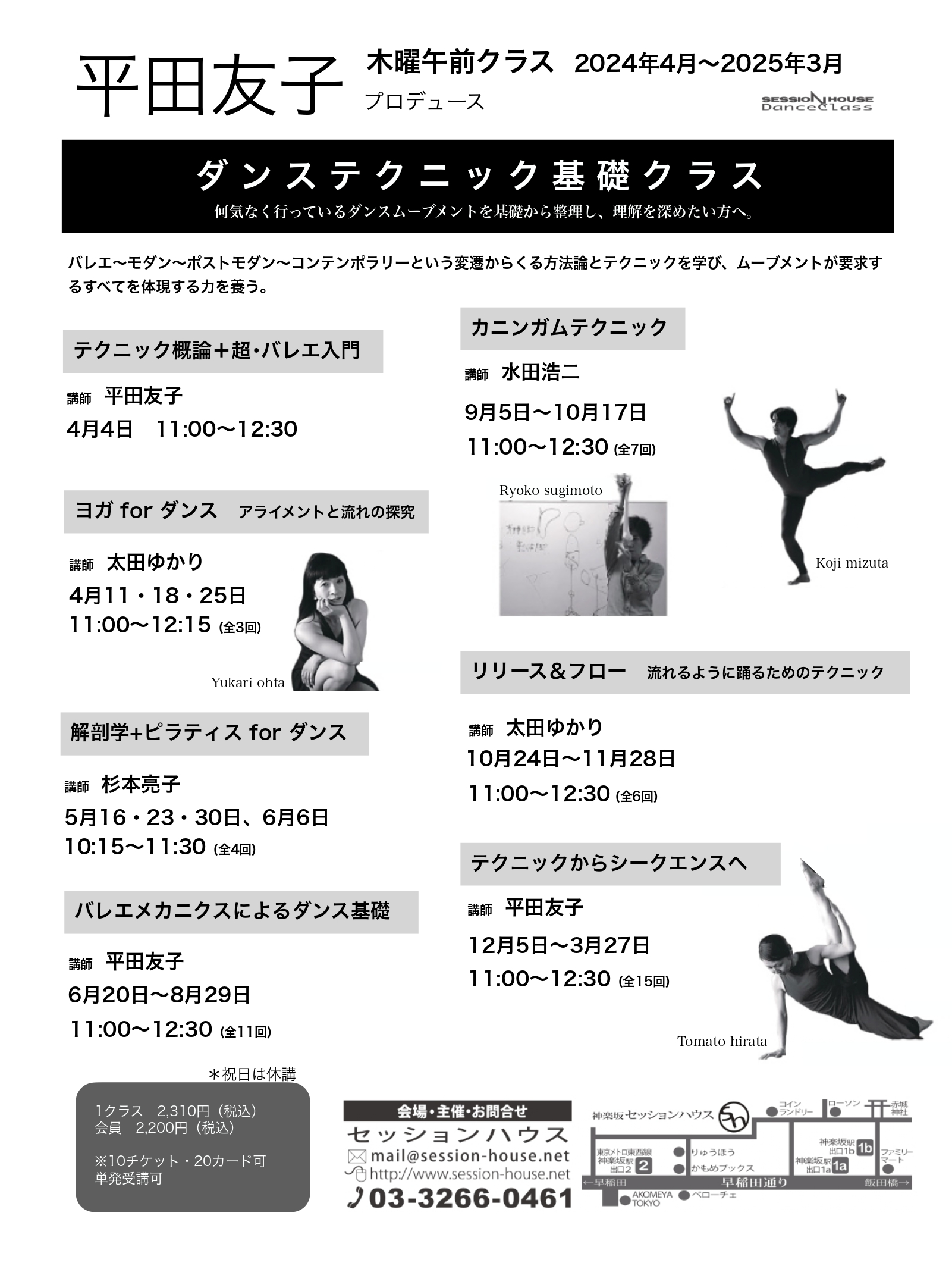 バレエ〜モダン〜ポストモダン〜コンテンポラリーという変遷からくる方法論とテクニックを学び、ムーブメントが要求するすべてを体現する力を養う。