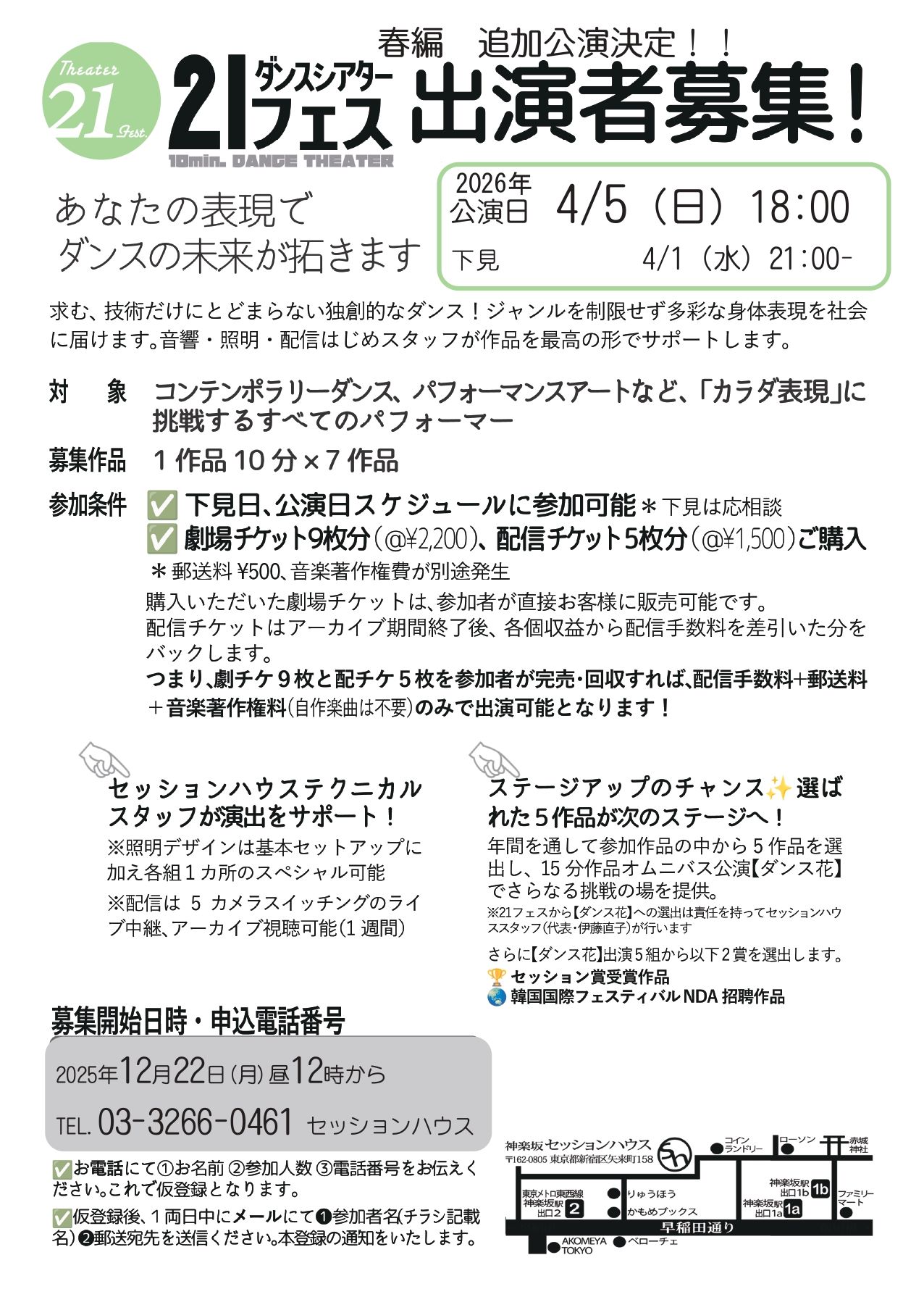 ダンスシアター21フェス"春編"vol.139 出演者募集 公演募集情報