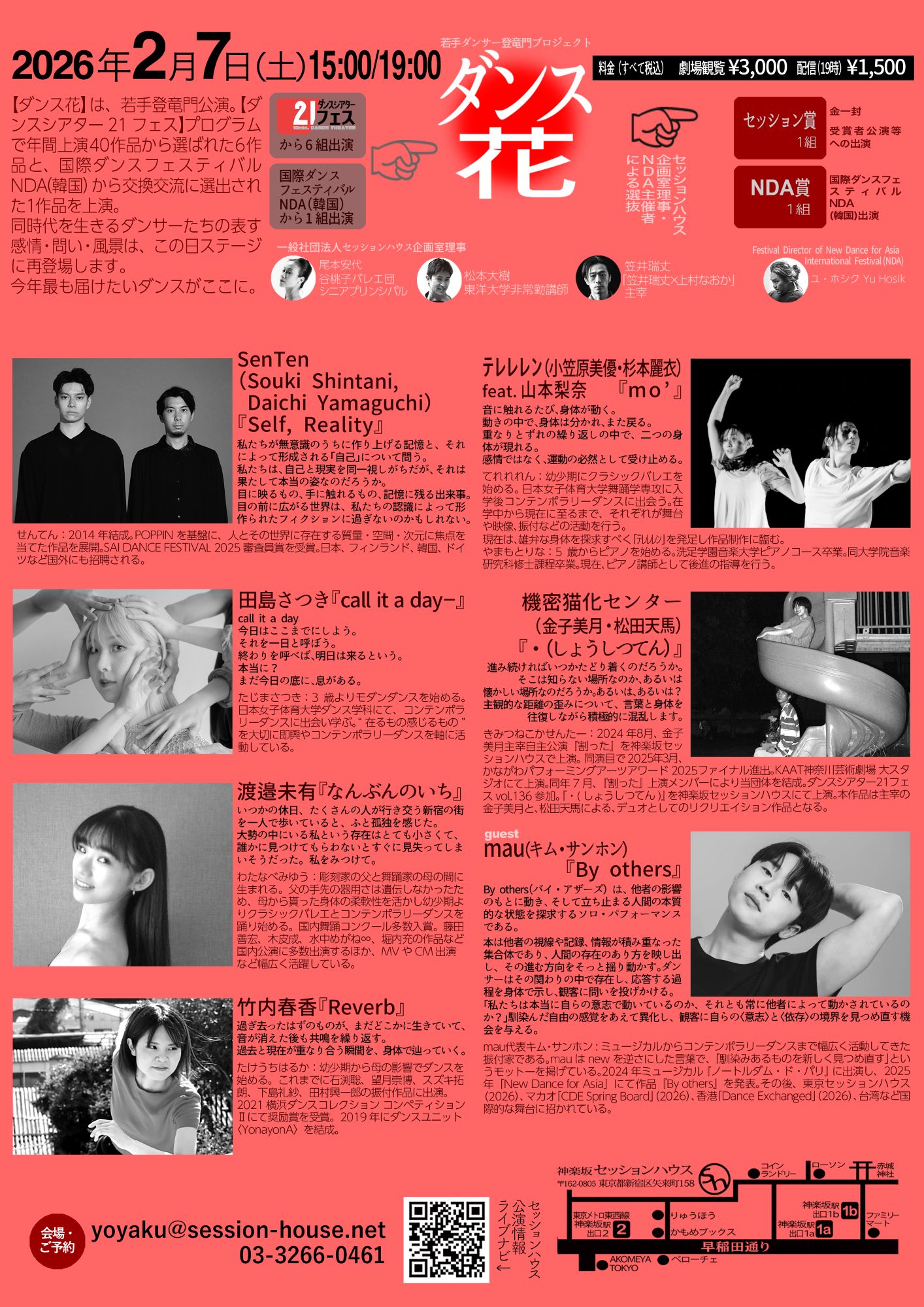 コンテンポラリーダンス公演を中心に演劇、パフォーマンス、トーク、朗読会など